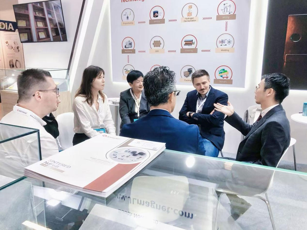Ningbo Golden Wheel Magnetic Materials-team har vundet enstemmig ros fra oversøiske kunder med innovative tekniske løsninger, stabil produktproduktion og god servicekvalitet. På denne tur til Berlin International Coil Exhibition brugte Jinlun Magnetic Materials den hårdeste videnskab og teknologi, den bedre teknologi og den mere oprigtige service til at forsvare Kinas industri for magnetiske materialer.
