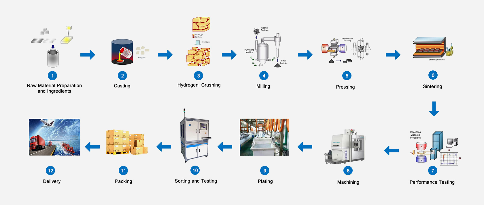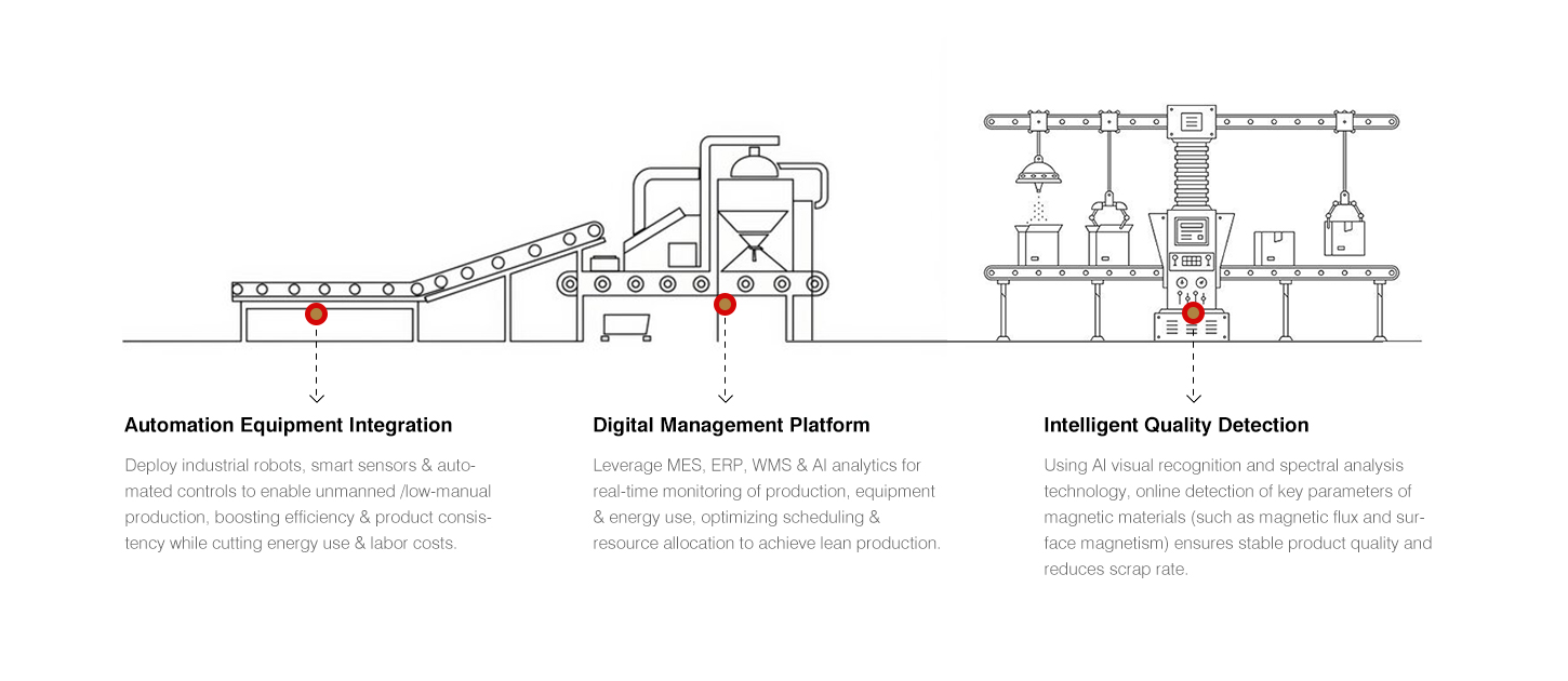 Jinlun Magnet er en teknologisk innovativ virksomhed med en hurtigt voksende produktionsskala, og dens produktydelse og produktionskapacitet er på højt niveau i branchen. Den insisterer på løbende at opgradere og transformere produktionsudstyr og processer for at skabe et intelligent digitalt værksted, der sporer hele produkternes livscyklus.
